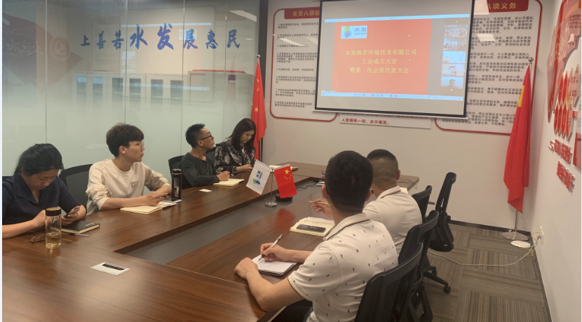 会议首先汇报了公司工会筹备情况,宣读了水发生态集团工会委员会《关于同意成立水发海若环境技术有限公司工会委员会的批复》。会议经过差额选举、无记名投票方式,选举了3名工会委员会委员,其中何灿星当选为水发海若环境技术有限公司工会第一届委员会主席。