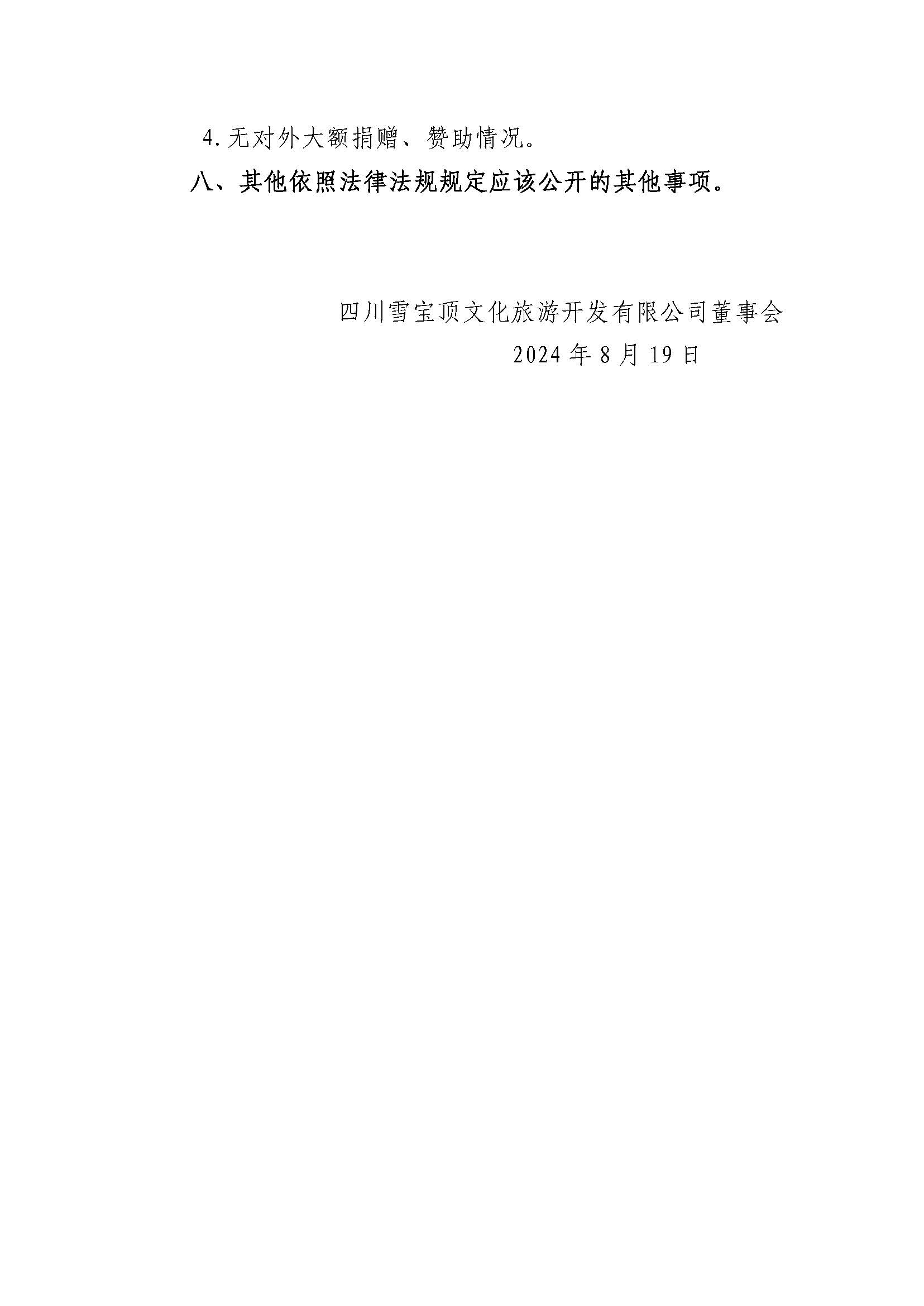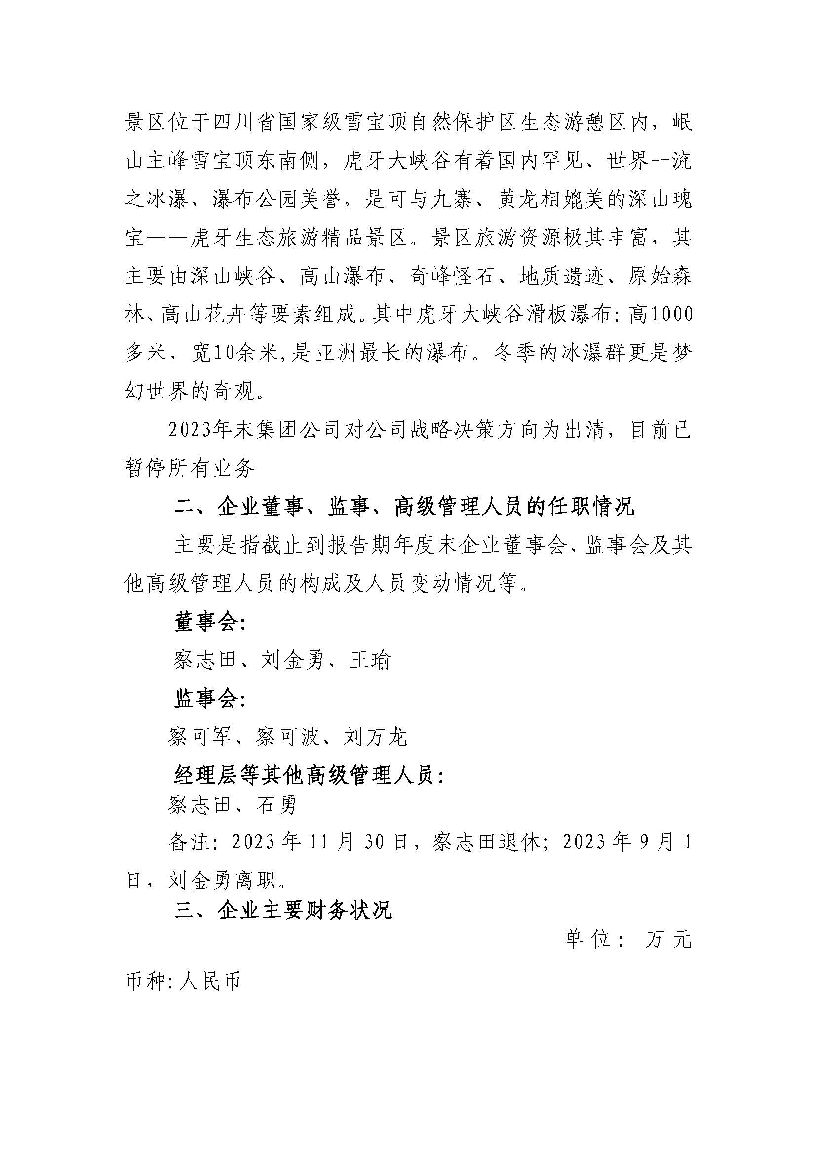四川雪宝顶文化旅游开发有限公司2023年度重大信息公告