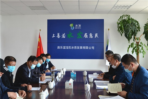 4月15日潍坊市城市管理局、市生态环境局调研小组到昌乐县调研污水处理厂排水水质提升工作。