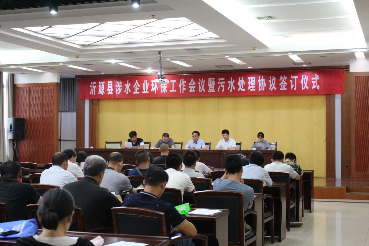 7月6日上午,由淄博市生态环境局沂源分局、县综合行政执法局主办,沂源水务发展有限公司承办的“沂源县涉水企业环保工作会议暨污水处理协议签订仪式”在县政府招待所会议室召开,主要目的是贯彻落实省、市、县及中央环保工作会议精神,加大对涉水企业的监管力度,共同打好水环境治理这场攻坚仗、这场硬仗。