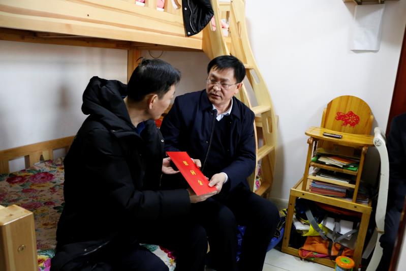 1月31日新春佳节即将来临之际,齐鲁集团总经理王福增、工会主席王鹏一行专程到困难职工李振兵家中走访慰问,并送去了新春的问候和祝福。