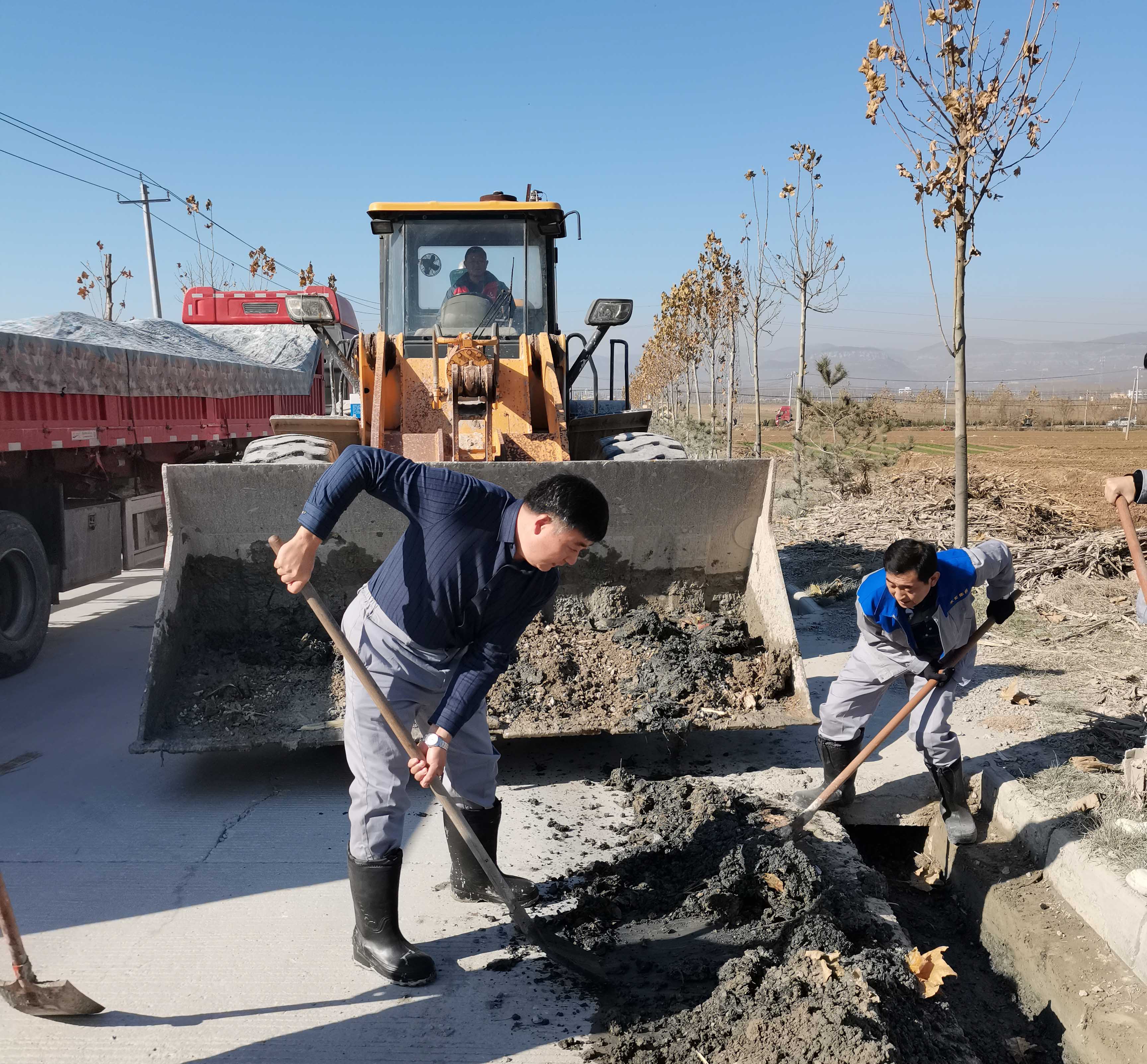 检查过程中发现,由于公司的重车运输道路排水沟积淤导致排水不畅,致使日常洒水抑尘的排水漫延到路面上而造成结冰,对过往车辆形成了一定的安全隐患。为节约资金,增强公司员工的向心力和凝聚力,公司号召广大员工积极行动,组织抽调员工对3公里的排水沟进行清理,共清理出淤泥杂物50余吨,为公司的冬季生产运输打下了良好的安全基础。