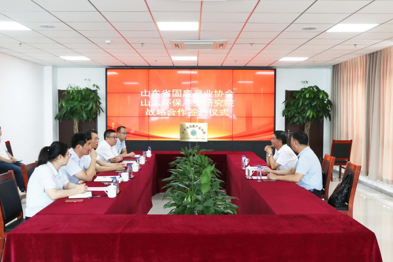 8月2日,山东环保产业研究院与山东省固废产业协会签订战略合作协议。省环保集团党委委员、副总经理,水发生态集团党委书记、董事长公培山,省环保厅固废与危化品污染防治中心副调研员刘士文出席仪式。协议由山东省固废产业协会秘书长郭献军,水发生态产业集团常务副总经理,山东环保产业研究院董事长王国防共同签署。